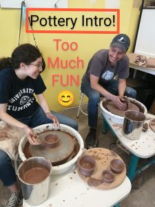 Less than 10 spots left! Learn to throw-trim-glaze. The basics & more! Pottery Fun Fridays (PFF) Book weekly. (Learn at your own pace) Independent time on the wheel. (for experienced potters) make-make-make $1/inch to fire. “We believe in a world of ARTISTS.”